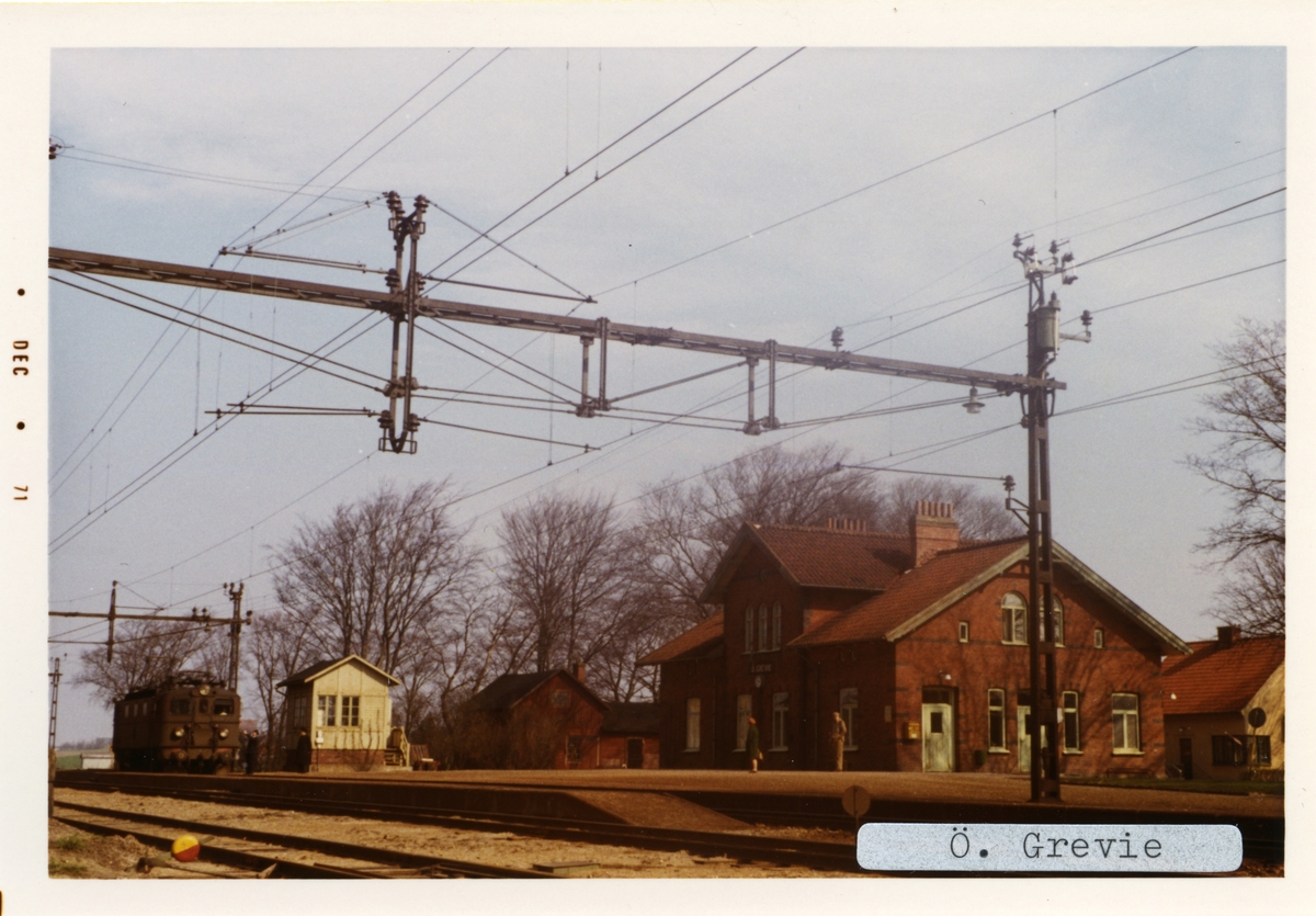 Östra Grevie station 1971. Malmö - Kontinentens Järnväg, MkontJ. Stationen byggdes och öppnades 1898. Banan elektrifierades 1933. Lades ner 1973. Loket är troligen ett SJ D.