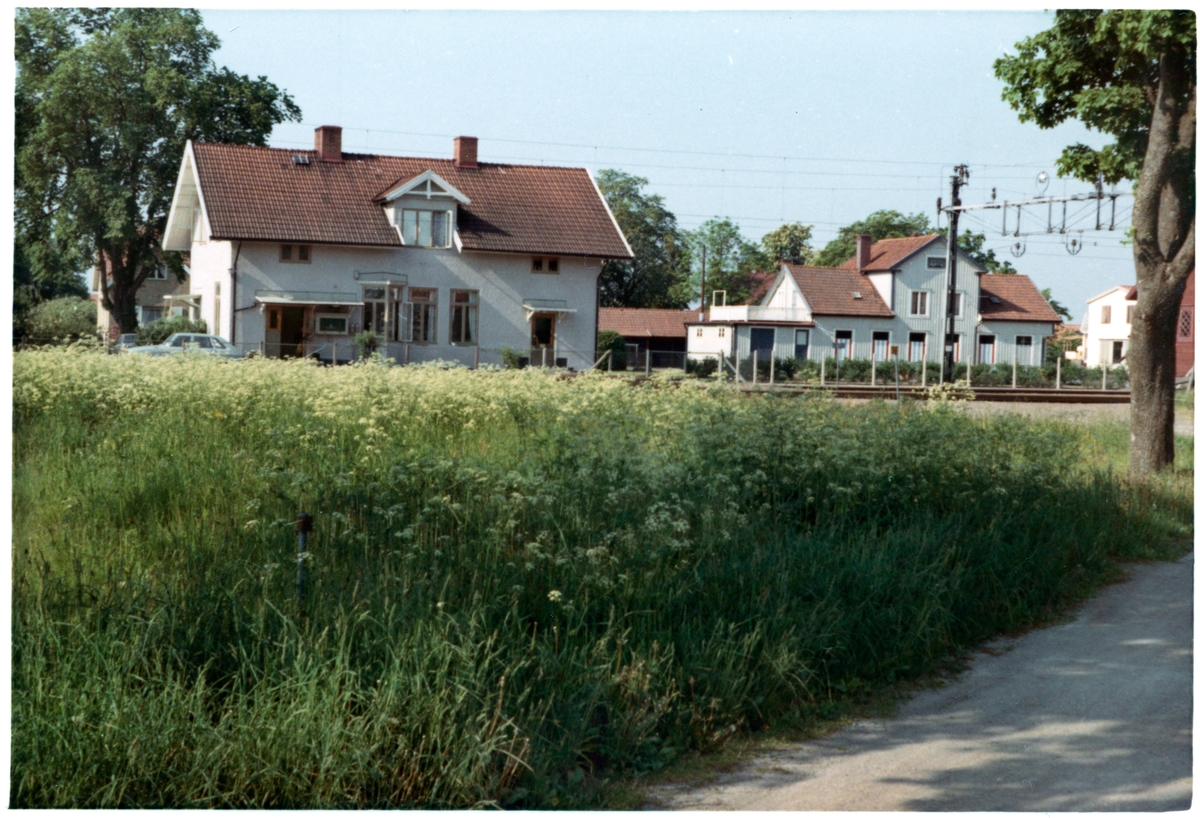 Station anlagd 1874. En- och enhalvvånings putsat stationshus.
