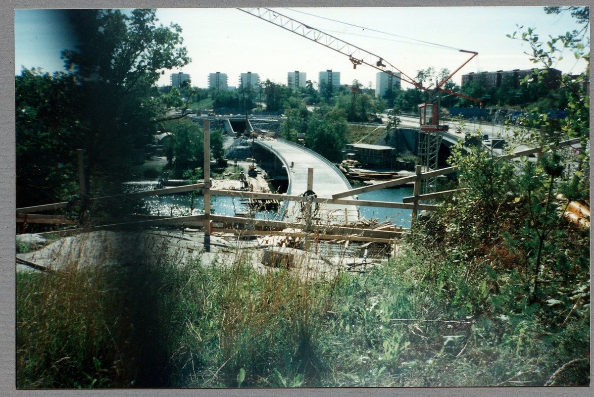 Byggandet av nya Stocksunds järnvägsbro på Roslagsbanan Stockholms - Roslagens Järnvägar, (SRJ) som invigdes 19 Augusti 1996.