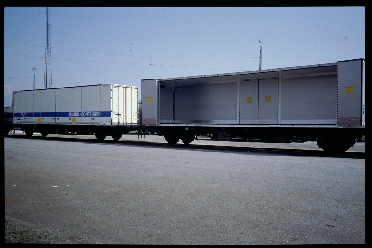 Statens Järnvägar, SJ Jumbocontainer 1361 001 och SJ Jumbocontainer 1361 002 på SJ Lgjs-vagnar.