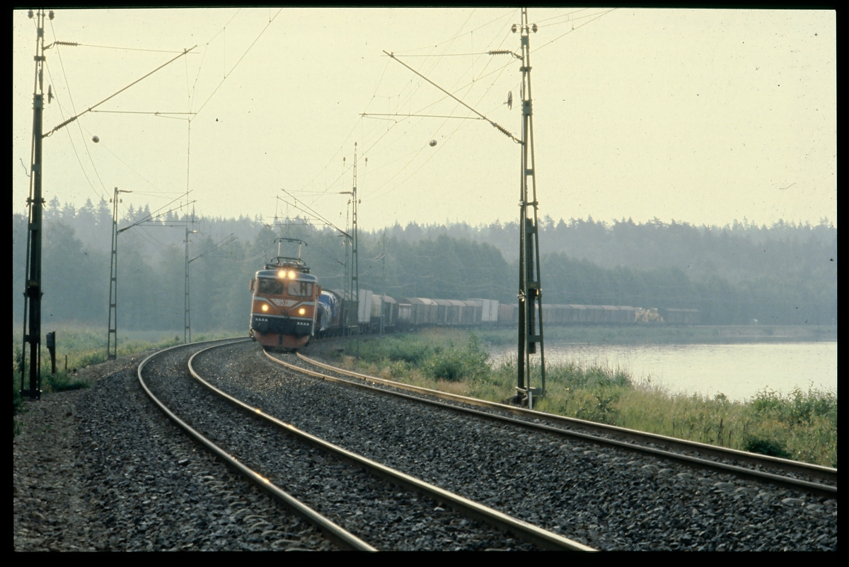 Statens Järnvägar, SJ Rc2 1111. Med godsvagnar.