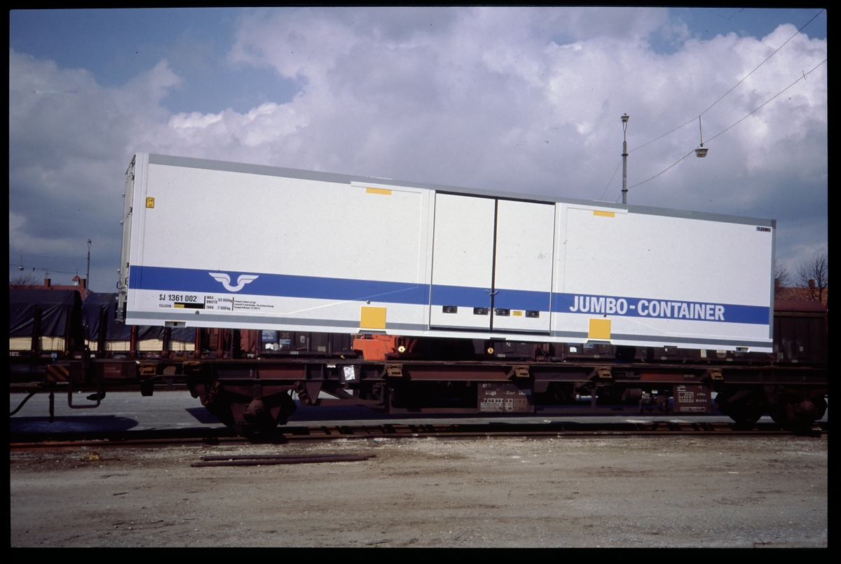 Lastning av Jumbo container på vagn SJ Lgjs.