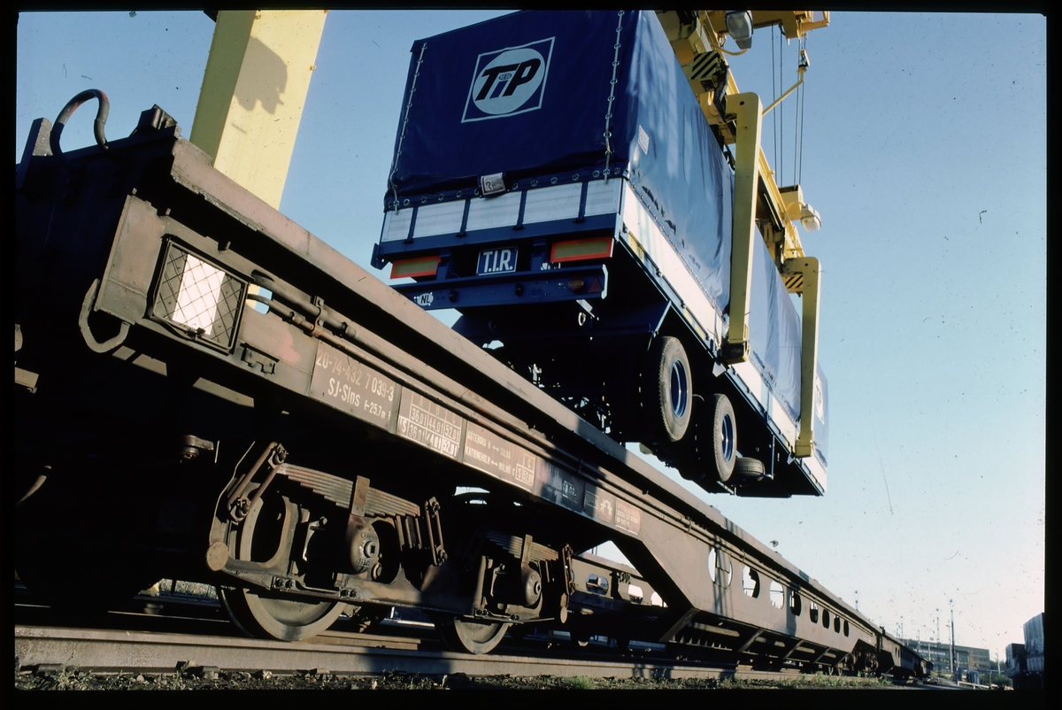 Lastning av lastbilssläp på SJ Slps. 20 74 432 7 039-3.
