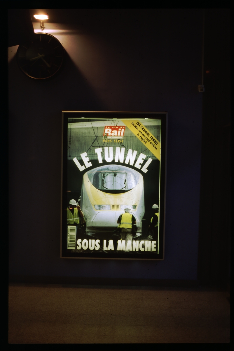 Affisch på lok för kanaltunneln under Engelska kanalen.