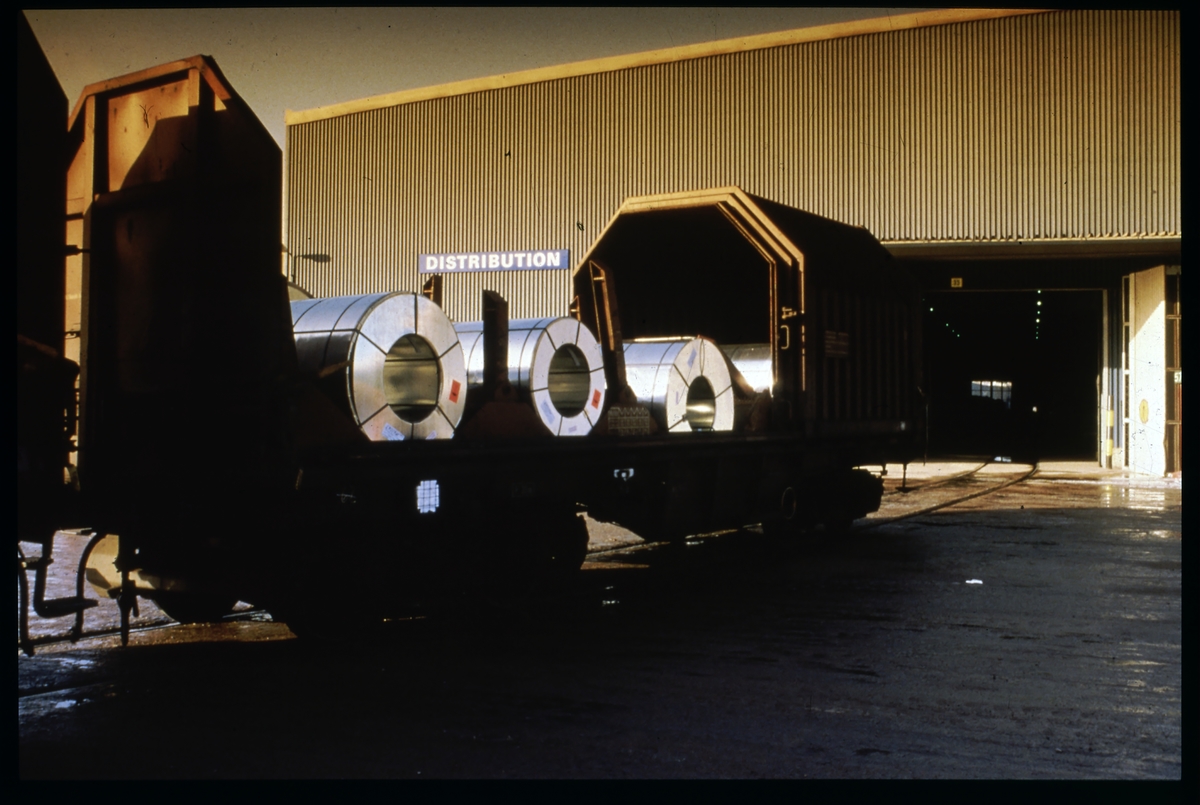 Statens Järnvägar, SJ Shimmns. Lastad med stålrullar.