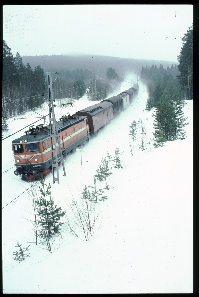 Statens Järnvägar SJ Rc4 1276, med godsvagnar.