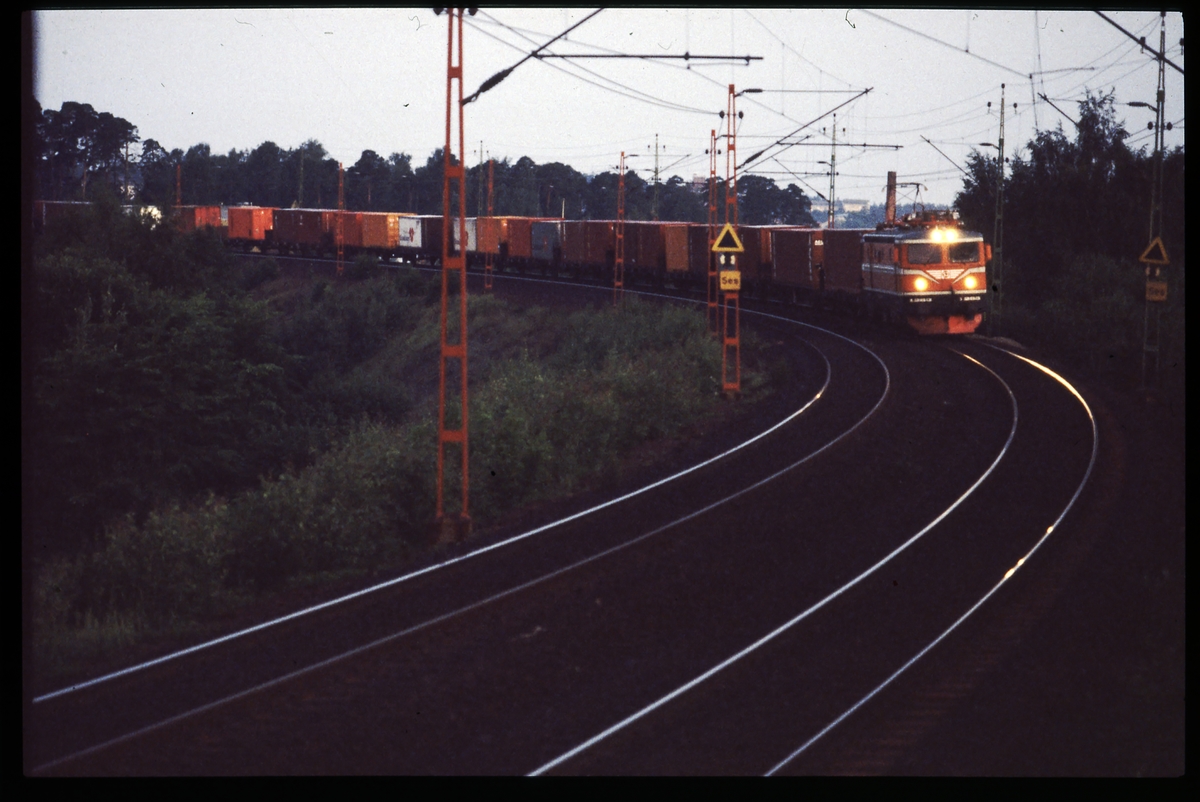 Statens Järnvägar SJ Rc4 1283, med godsvagnar.