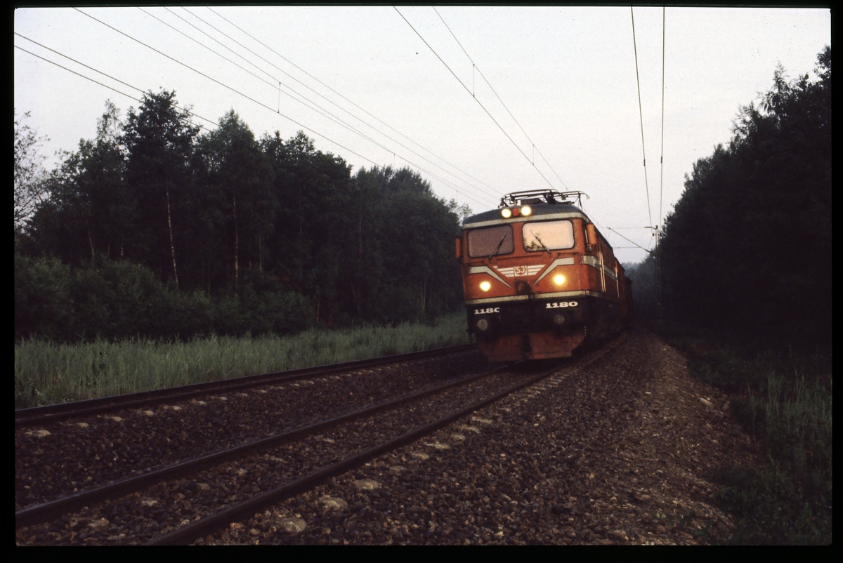 Statens Järnvägar SJ Rc4 1180, med godsvagnar.