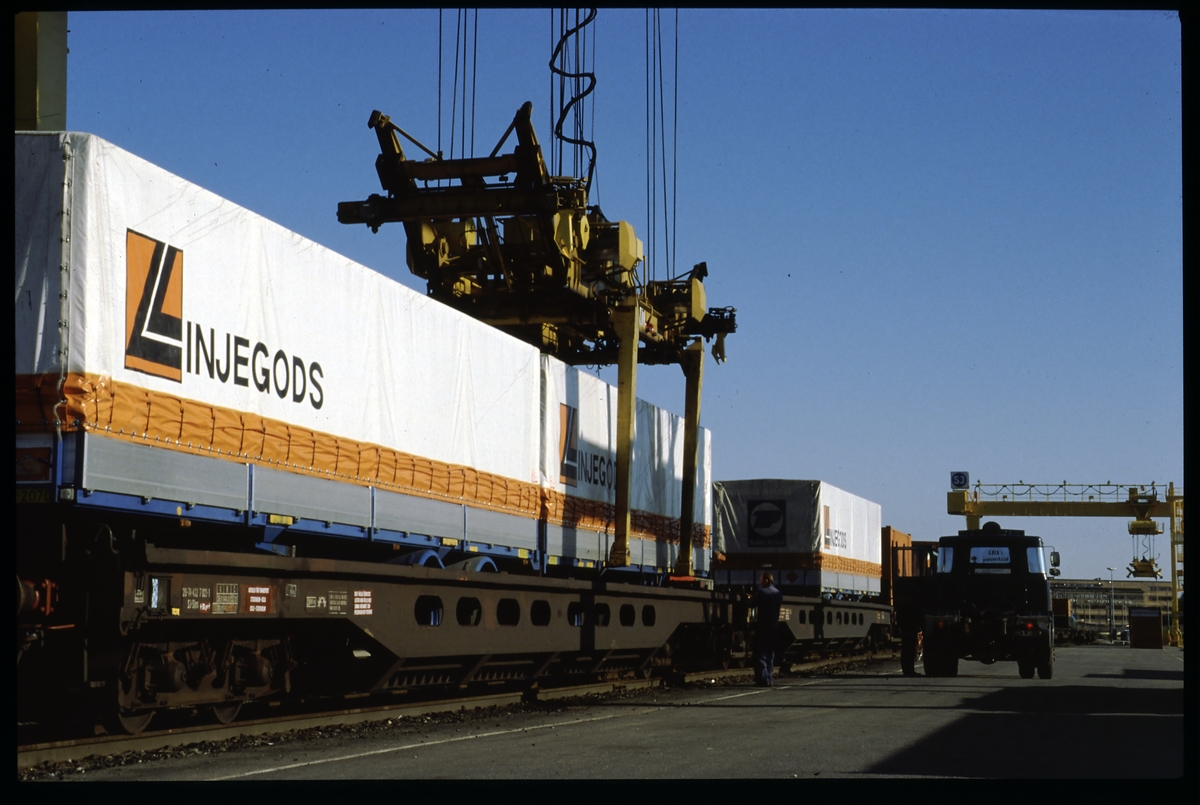 Titel: Lastning av dragvagnar på godsvagnar av typ SJ Slps. Statens Järnvägar, SJ Slps 20-74-432 7 021-1.