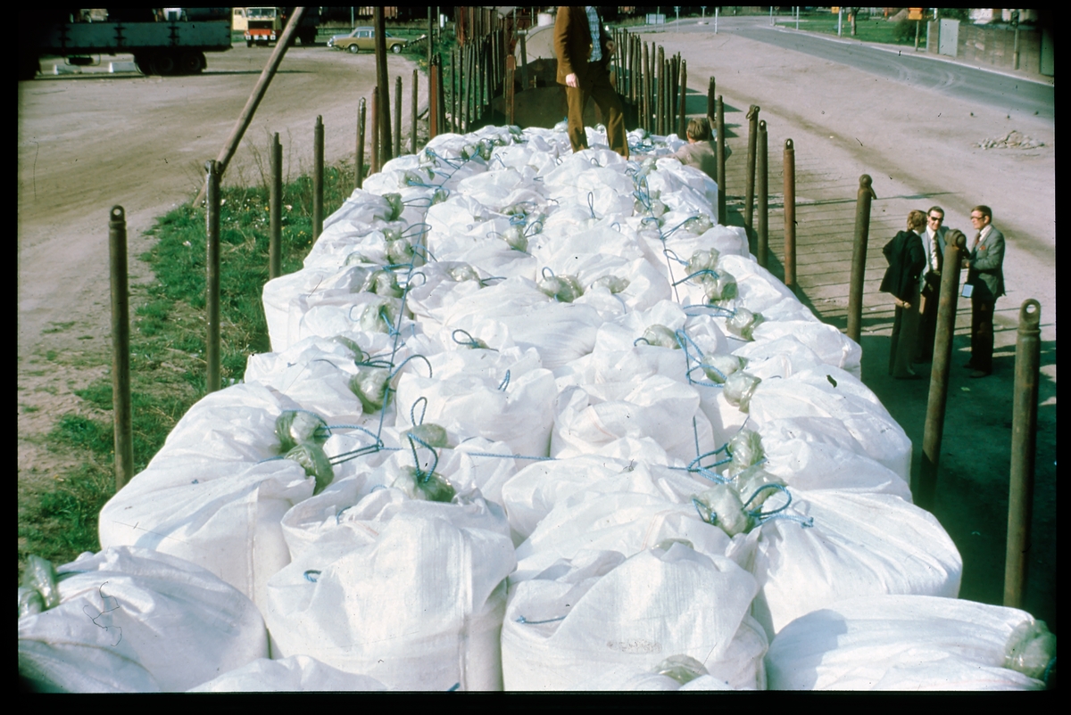 Statens Järnvägar SJ Oms lastad med storsäckar.