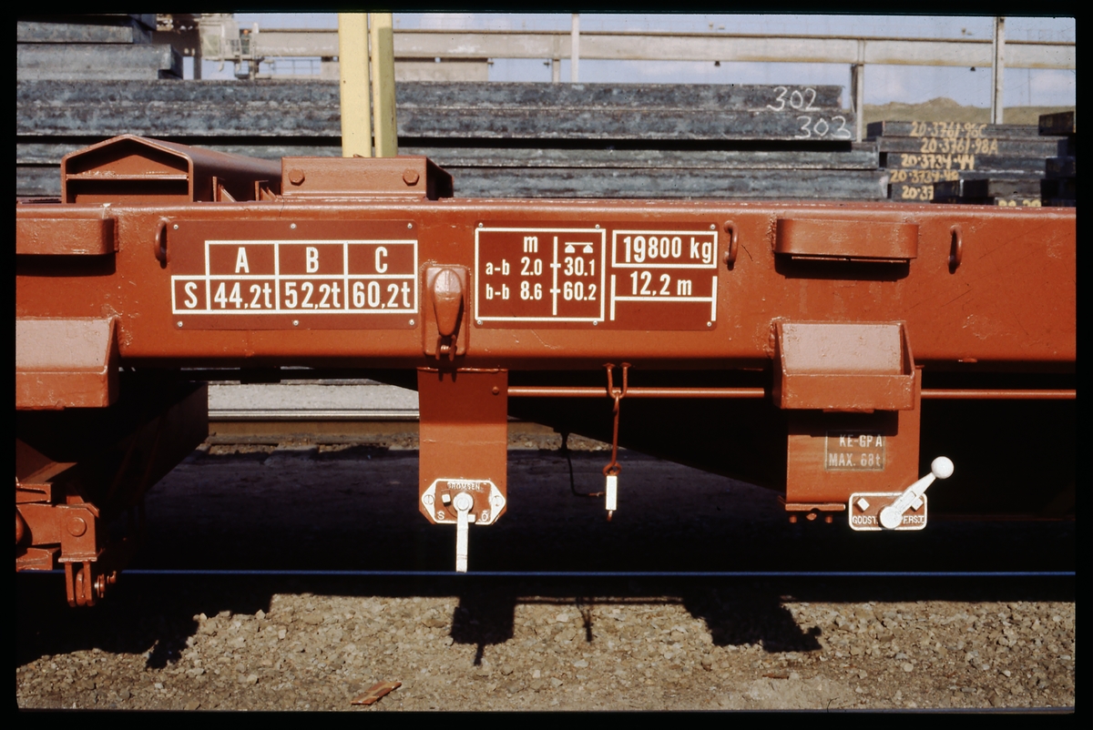 Detalj av märkning på Statens järnvägar SJ stålämnesvagn.