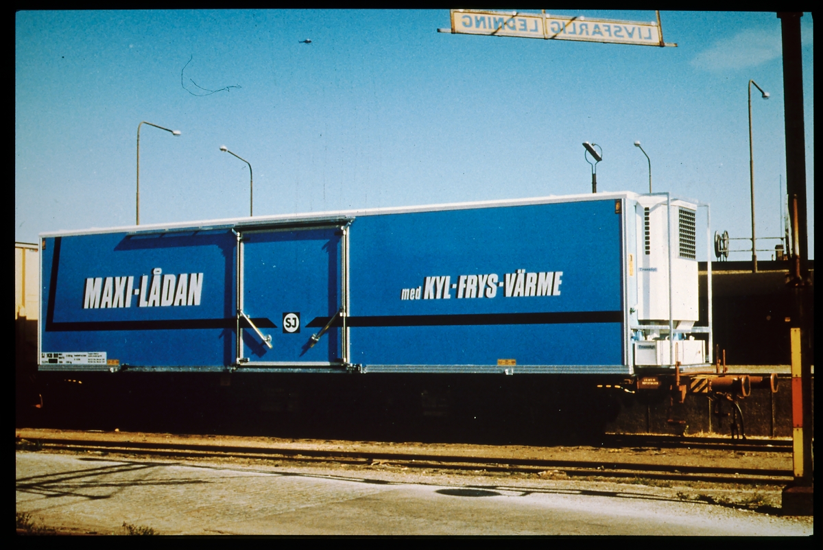 Statens järnvägar SJ Sgjnqss-w med maxicontainer.
