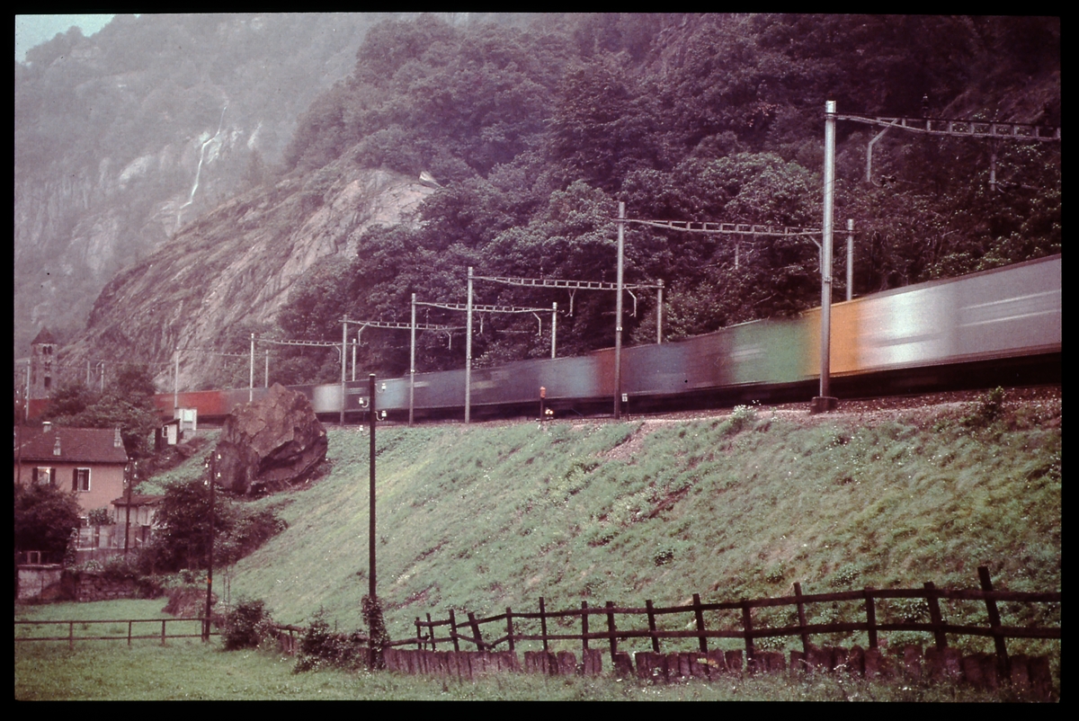 Godståg på utländsk järnväg.