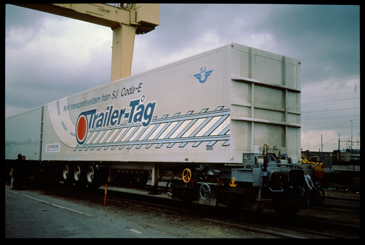 Coda-E trailer med SJ Uas ändboggi. Statens Järnvägar.