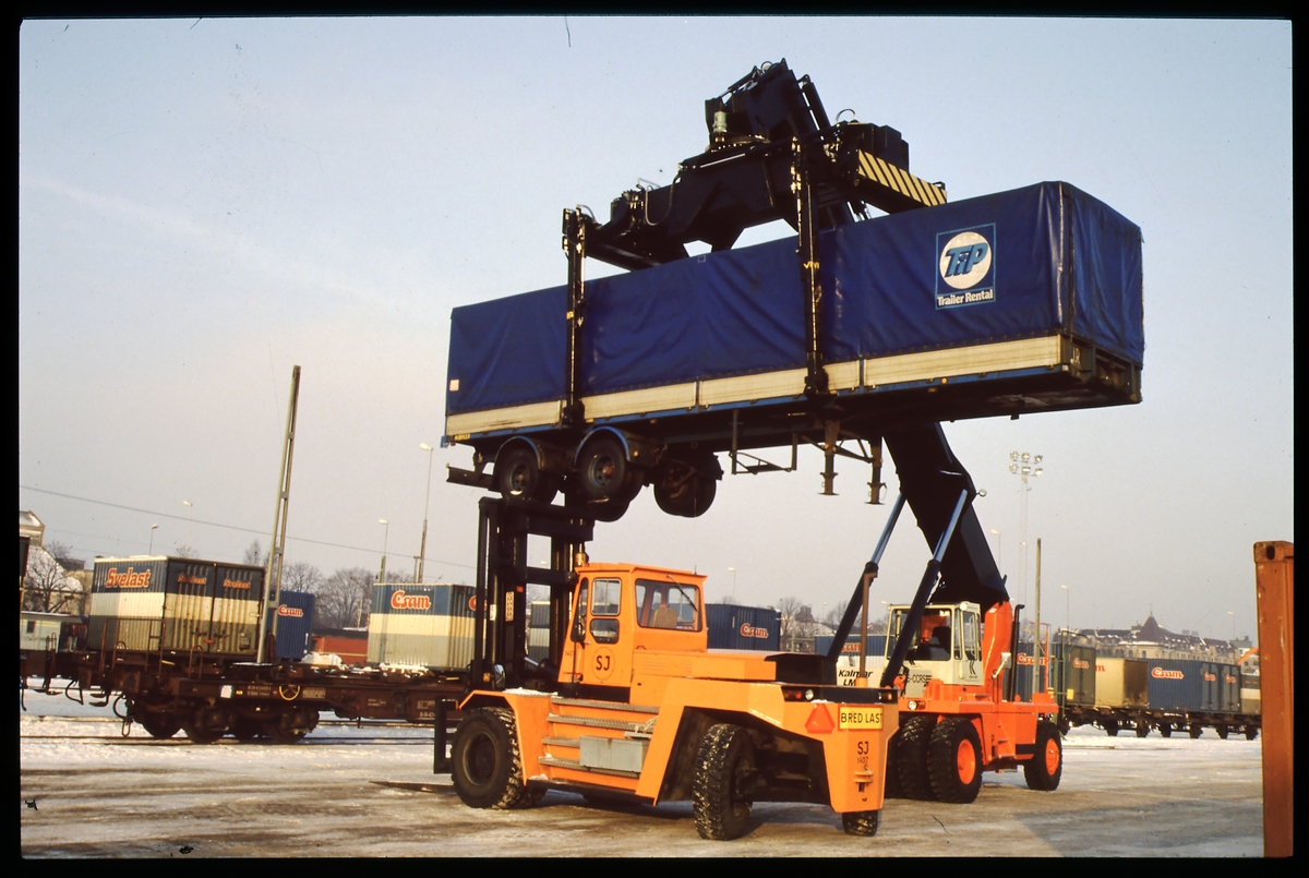 Lastning av lastbilssläp vid årsta bangård och godsterminal.