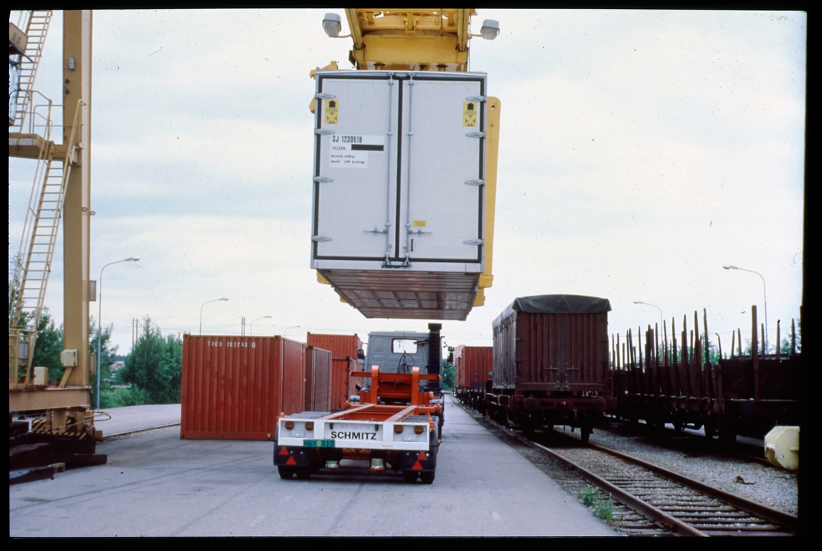 Lastning av SJ container 1239518 till ett lastbilssläp.
