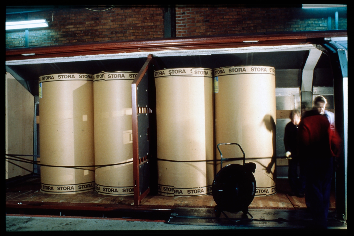 Säkring av last, SJ Hbikks-tv godsvagn. Statens Järnvägar.