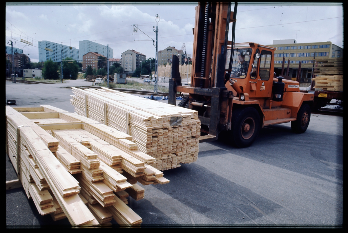 Virkeslastning/lossning med truck, Statens Järnvägar, SJ 1788.