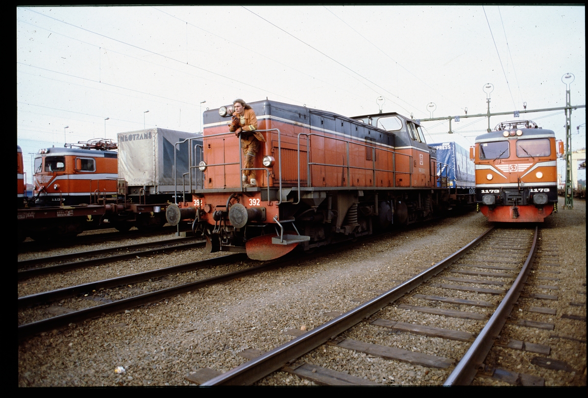 Statens Järnvägar, SJ T44 392 under pågående växlingsarbete. Till höger syns SJ Rc4 1173.