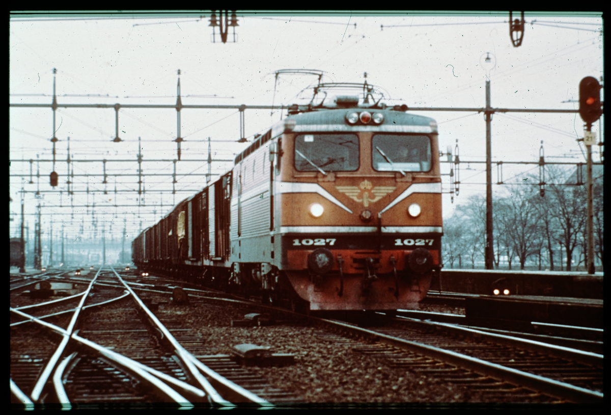 STatens Järnvägar, SJ Rc2 1027 med godsvagnar.
