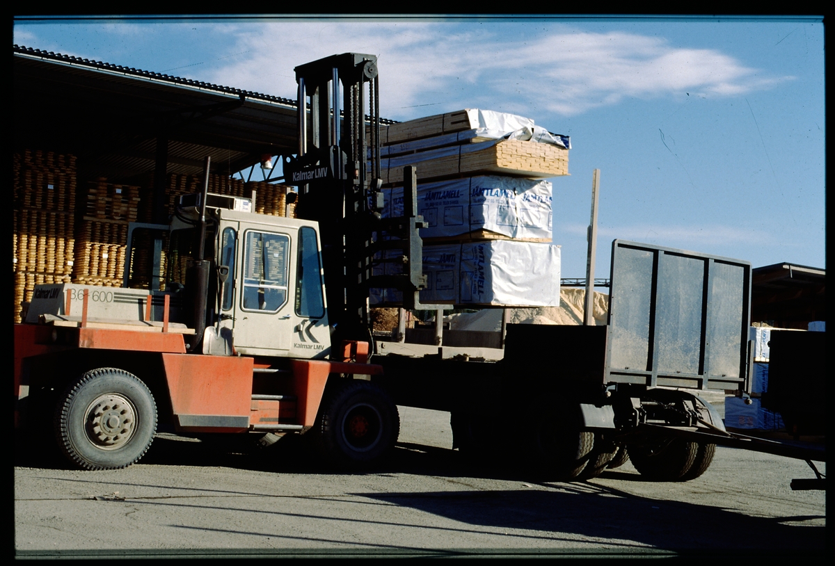 Lastning av släp med hjälp av gaffeltruck.