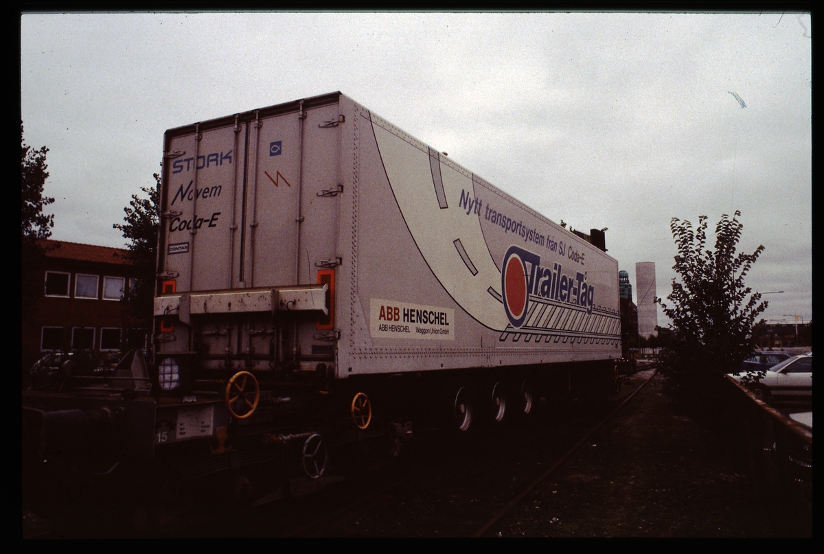 Coda-E trailer med SJ Uas ändboggi. Statens Järnvägar.