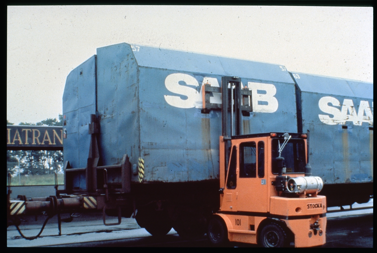 Titel: Truck "STOCKA" 101 framför specialcontainer för SAAB.