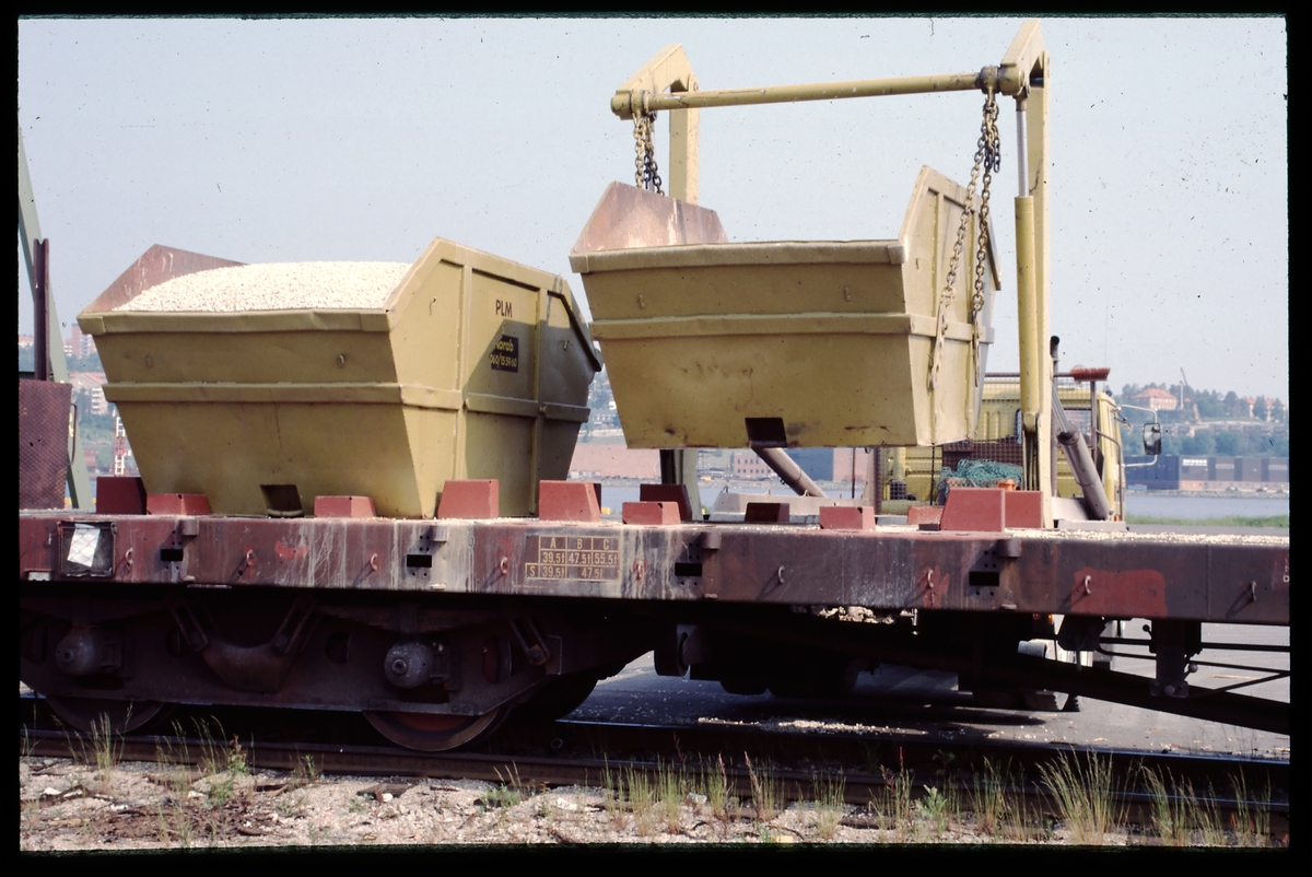 Titel: Lossning av gruscontainer från SJ Rs 31-74-390 0 019-9. Statens Järnvägar.