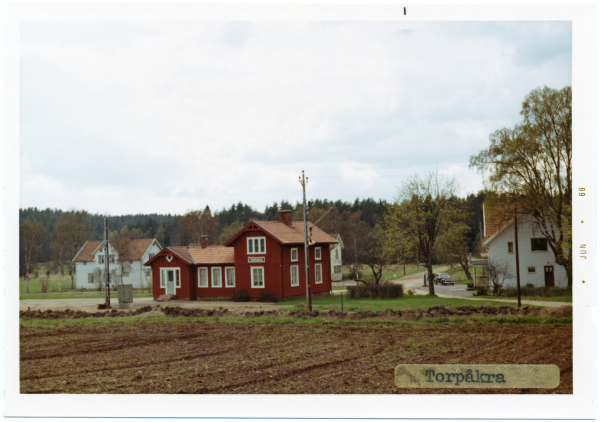 Vy vid Torpåkra station. Hette tidigare ÖNA. Hållplats anlagd 1906. Vaktstuga bestående av en banvaktsstuga, ev. från Säryd, uppfördes av arkitekt L Kernuant. Den tillbyggdes 1926. Stugan finns 1988 kvar.Hållplats anlagd 1904. Envånings byggnad i trä. Mekanisk växelförregling