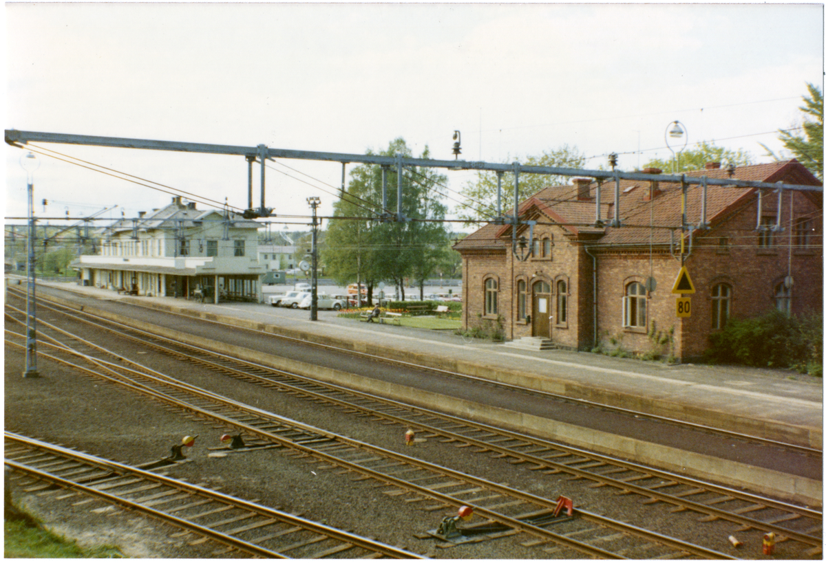 Uddevalla - Vänersborg - Herrljunga Järnväg, UVHJ, Stationen byggd 1866. Arkitekt C Adelsköld. Stationen hade banhall 1866. Bangården utökades och förlängdes. 1917 anlades ytterliggare tre spår, 1914 anlades ett spår till tändstickfabriken.