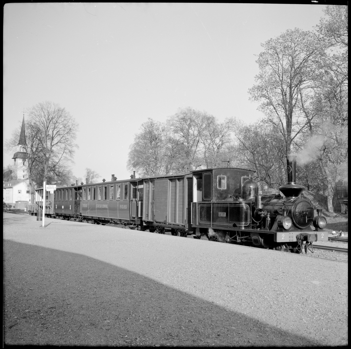 Museijärnvägen, Östra Södermanlands Järnväg, ÖSlJ ångtåg med Kosta - Lessebo Järnväg, KLJ G 29, lok 2 "Virå", Stafsjö Järnväg 2:a och 3:e klass vagn, Munkedals Järnväg, MJ 3:e klass vagn och öppen personvagn på stationen i Mariefred.