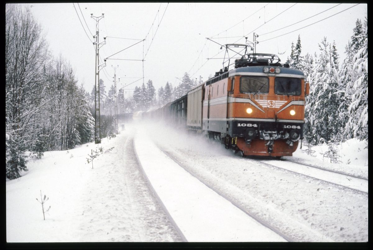 Titel: Statens Järnvägar SJ Rc2 1084 med godståg.