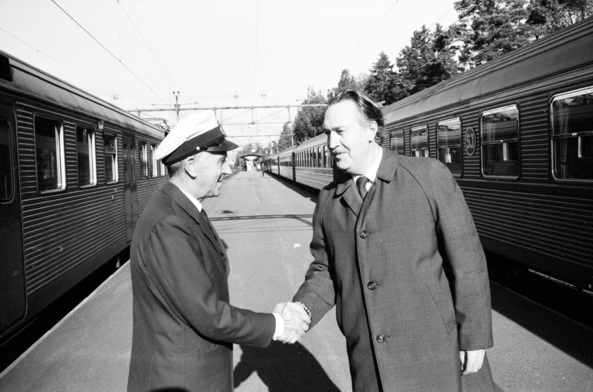 Titel: Knr, konduktör Gösta Larsson avgick med pension utan att ha varit sjukskriven under sin tjänstetid vid SJ, Statens Järnvägar