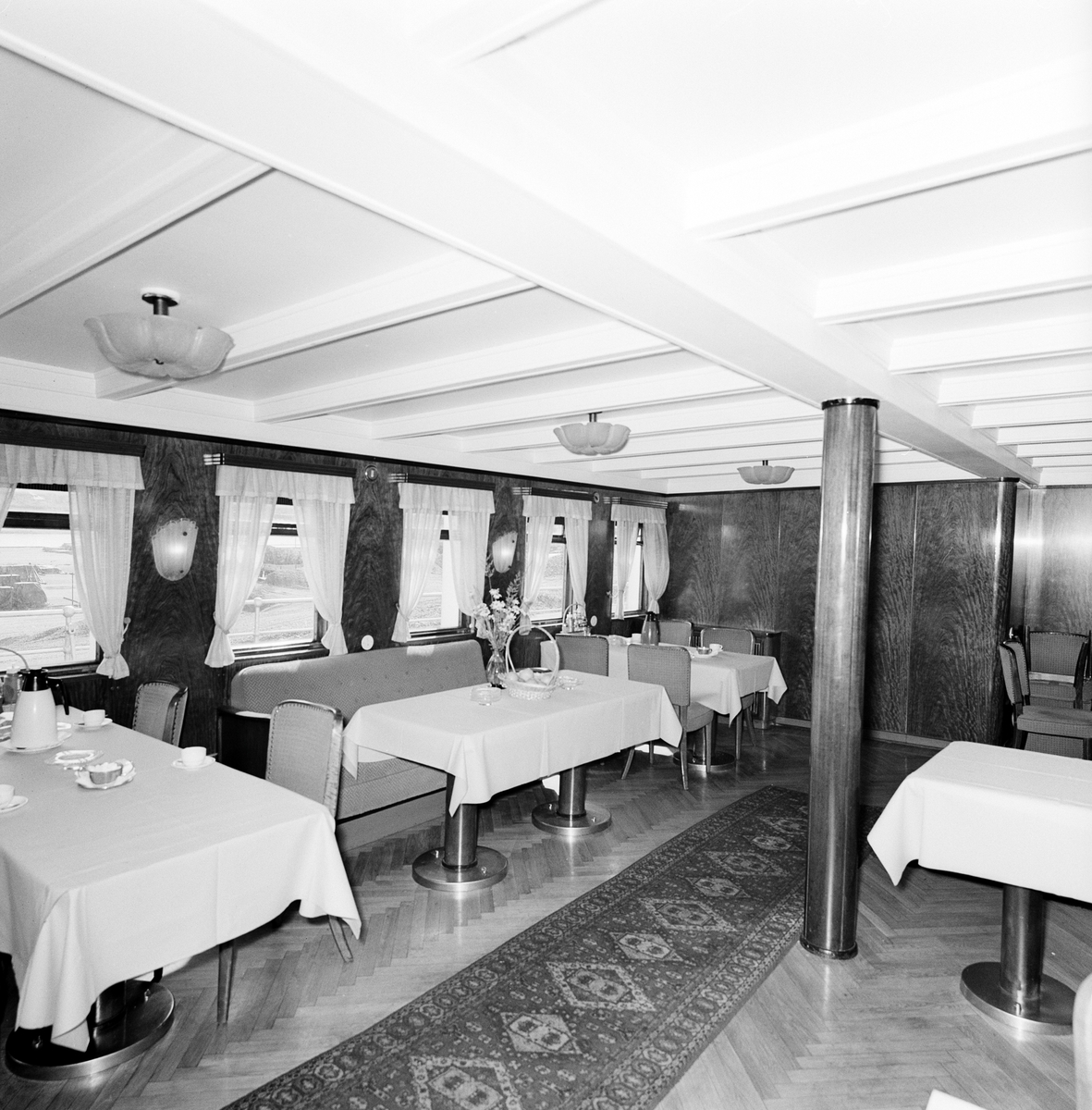 Färjan S/S Starke, interiör. Levererades 1931 till Statens Järnvägar, SJ, Malmö för att trafikera leden Trelleborg - Sassnitz. Åren 1970 -1971 insatt mellan Stockholm - Nådendal. Togs ur trafik december 1971