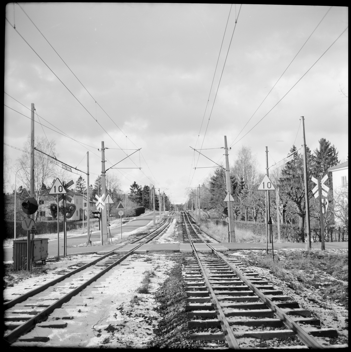 Järnvägsövergång vid korsningen Valevägen Sköldvägen på Djursholm i Stockholm.