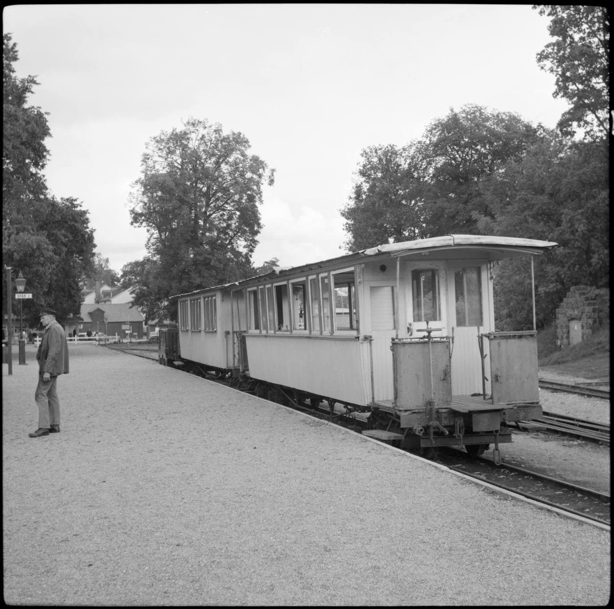 Personvagnar ankommer till Östra Södermanlands museijärnväg.
