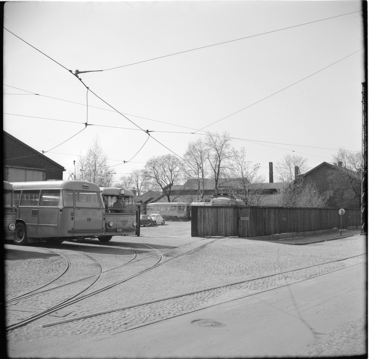 Bussar utanför garage och verkstad på Amiralitetsgatan.