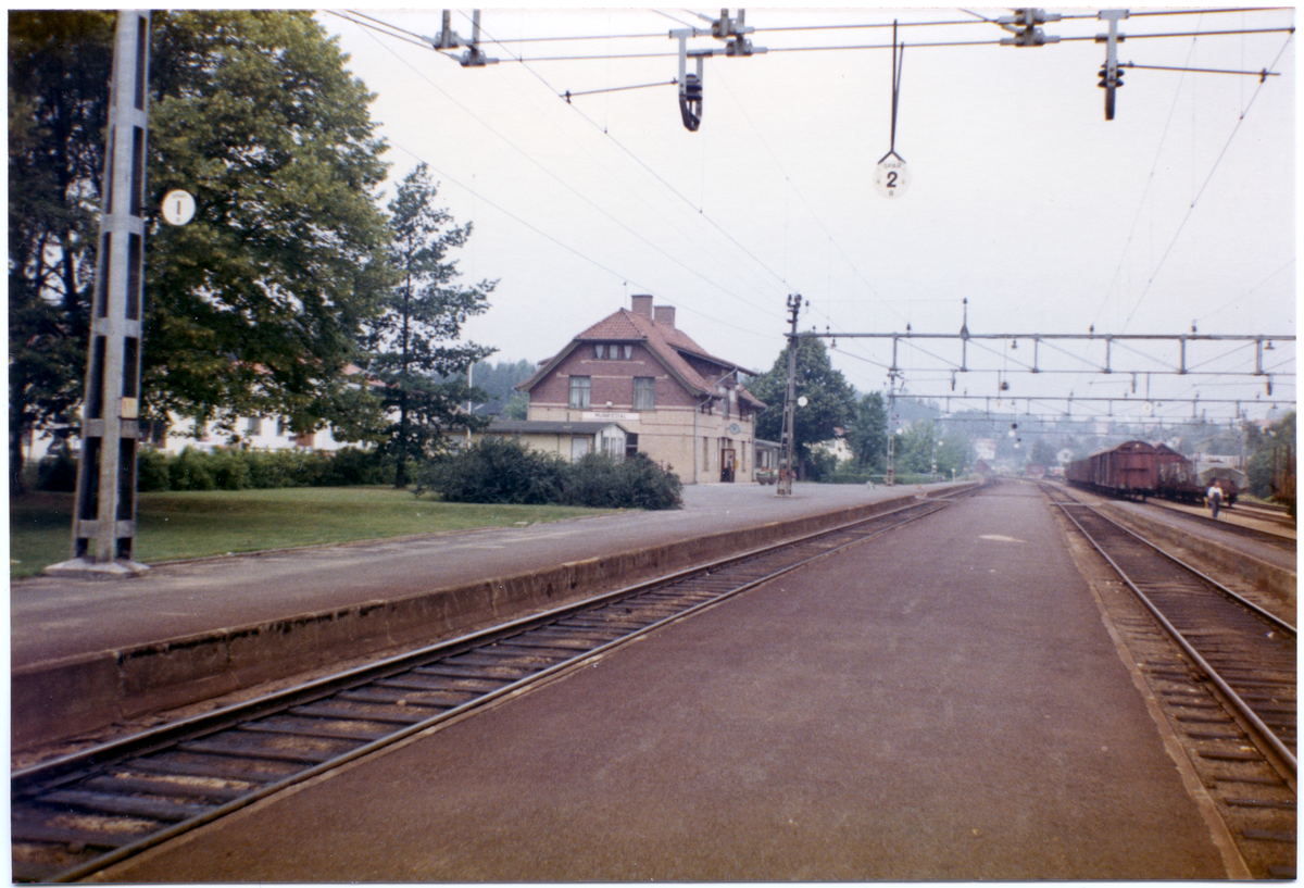 SJ-stationen anlades 1905.Stationshuset, i två våningar i sten, moderniserades 1936. Pressbyrån har kiosk med servering vid stationen.