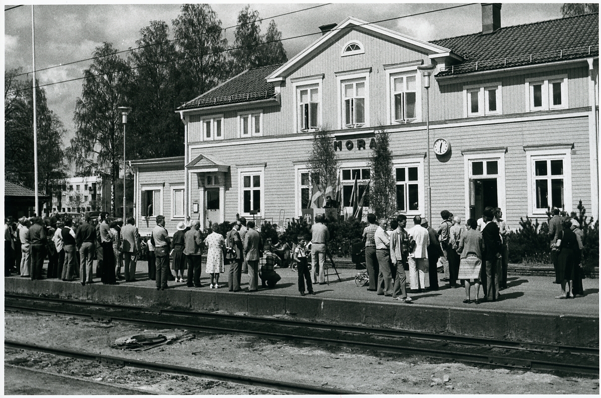 Mora station. Från invigningen av eldriften på linjen Borlänge - Mora.