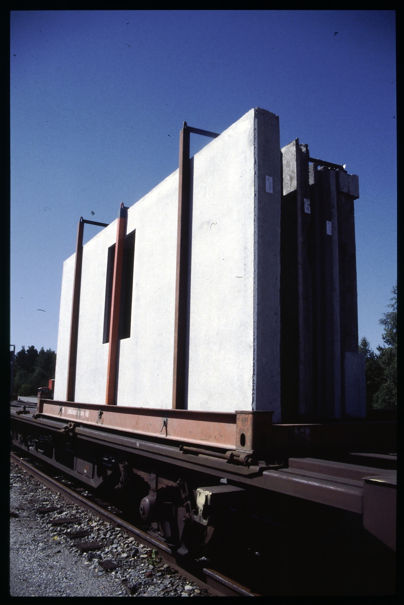Godsvagn lastad med väggsegment.