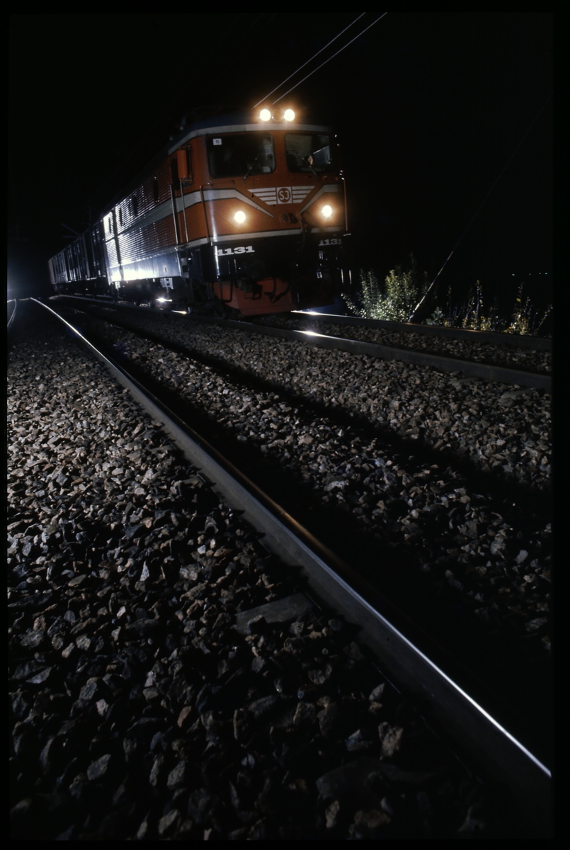 Statens Järnvägar SJ Rc2 1131, med godsvagnar.