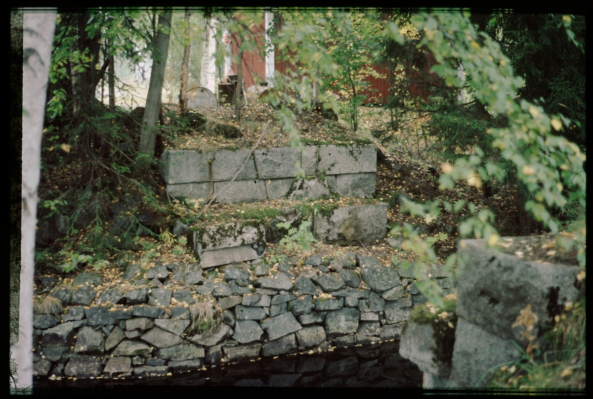 Brofäste till järnvägsbro längs spåret till Strömsdals hytta.