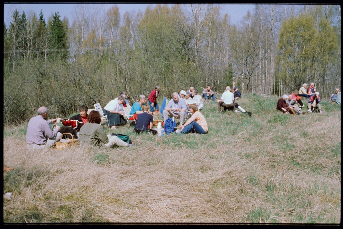 Länna Hembygdsförening på utflykt till torprester i Stenbro, söder om Merlänna.