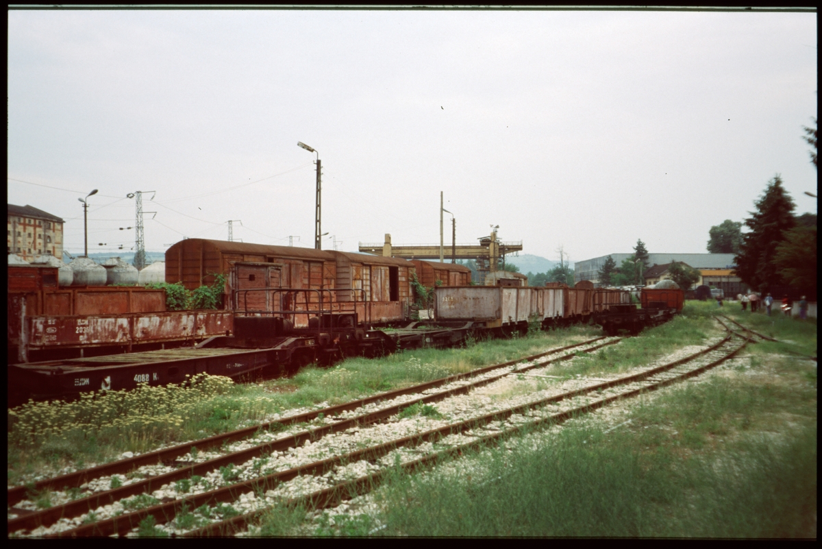 Blandade godsvagnar på bangården i Cherven Bryag, Bulgarien