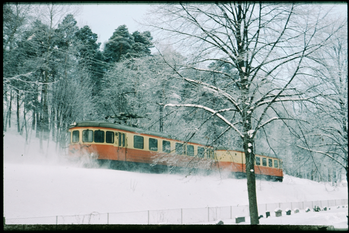 Statens Järnvägar, SJ:s persontåg vid kyrkogården i Strängnäs.