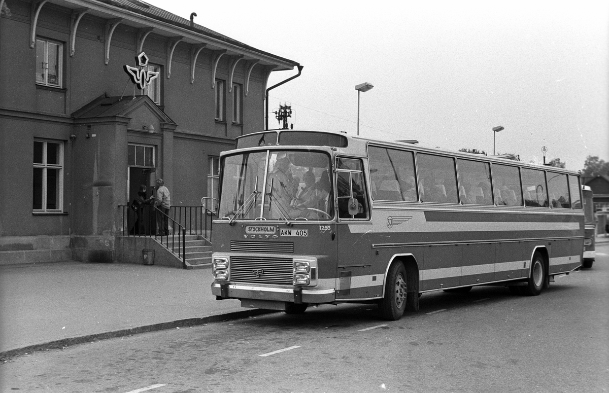 Busshållplats resande med utflyktståg från Värmland. Statens Järnvägar, SJ buss 1253.