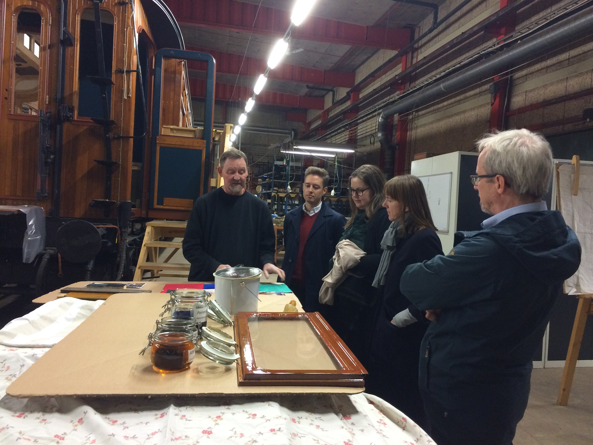 Visning av restaurering och ytbehandling för personal från kulturdepartementet.