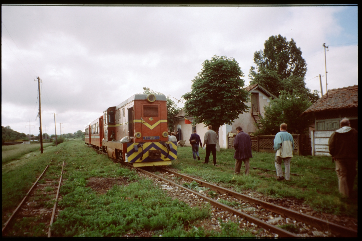 Caile Ferate Române, CFR diesellok 87-0041-1 med personvagnar vid Berghia station, Rumänien.