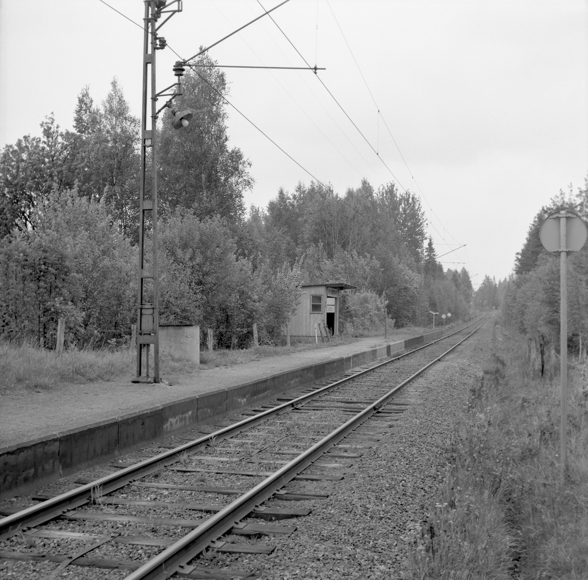 Hemsjöstrand hållplatsbyggnad och plattform.
