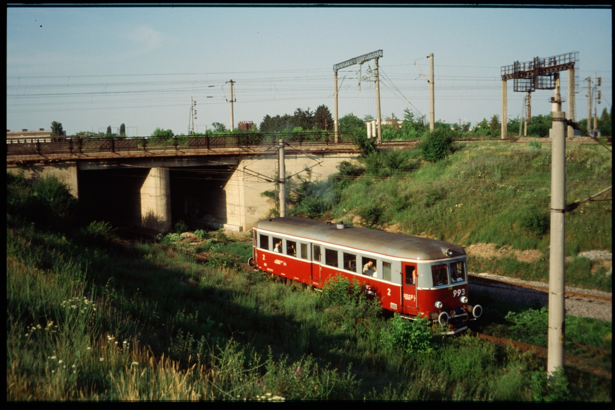 Motorvagn i närheten av Bukarest, Rumänien. Caile Ferate Române, CFR B 77-0993-4.